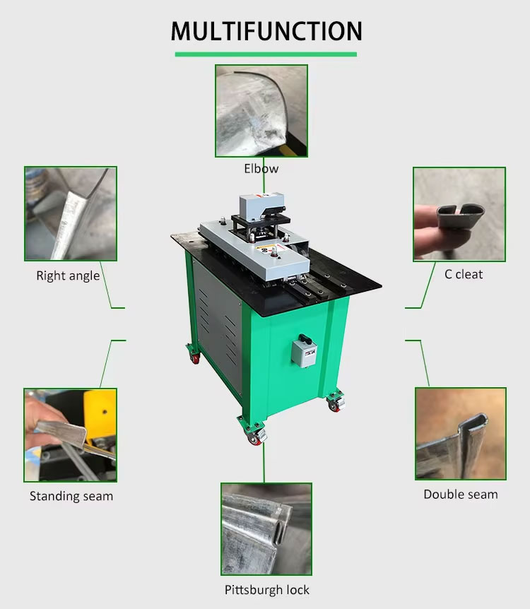 Lock forming machine has seven lock forming stations, one is male lock forming, which is a straight corner lock forming, and the other is female lock forming, which is a straight corner lock forming with two lock forming. The thickness of the sheet can be 0.5-1.2mm, the machine is equipped with nine rows of shaped rollers, two outlets, the production speed can reach 18 m/min, which is several times more than the traditional production. The machine is manufactured to high quality standards to provide customers with superior products. Our products are equipped with high quality finished rollers, high quality motors, high precision bearings, heavy duty chassis; strong cabinet, rounded shafts and welded steel supports. This ensures high efficiency and long service life of the machine and saves you money.